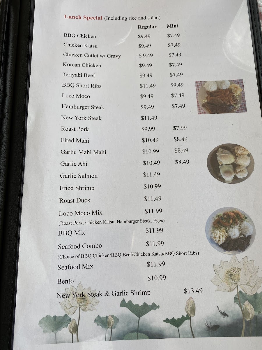 - Saimin: Dive into our comforting noodle soups, featuring BBQ Chicken and Teriyaki Beef for a delightful taste experience.